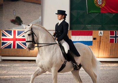 Inês began her riding career at the age of three. Her public debut was in the show perfromed by the Centro Equestre da Lezíria Grande at the Golegã Horse Fair. She did a Pas 3 with her mother and grandfather, as well as a solo. She hasn’t stopped since then! Inês has been in hundreds of shows in Portugal and abroad as part of the CELG cast of riders.